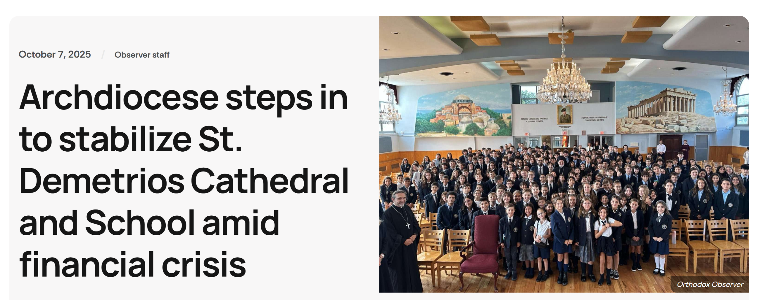 Archdiocese steps in to stabilize St. Demetrios Cathedral and School amid financial crisis